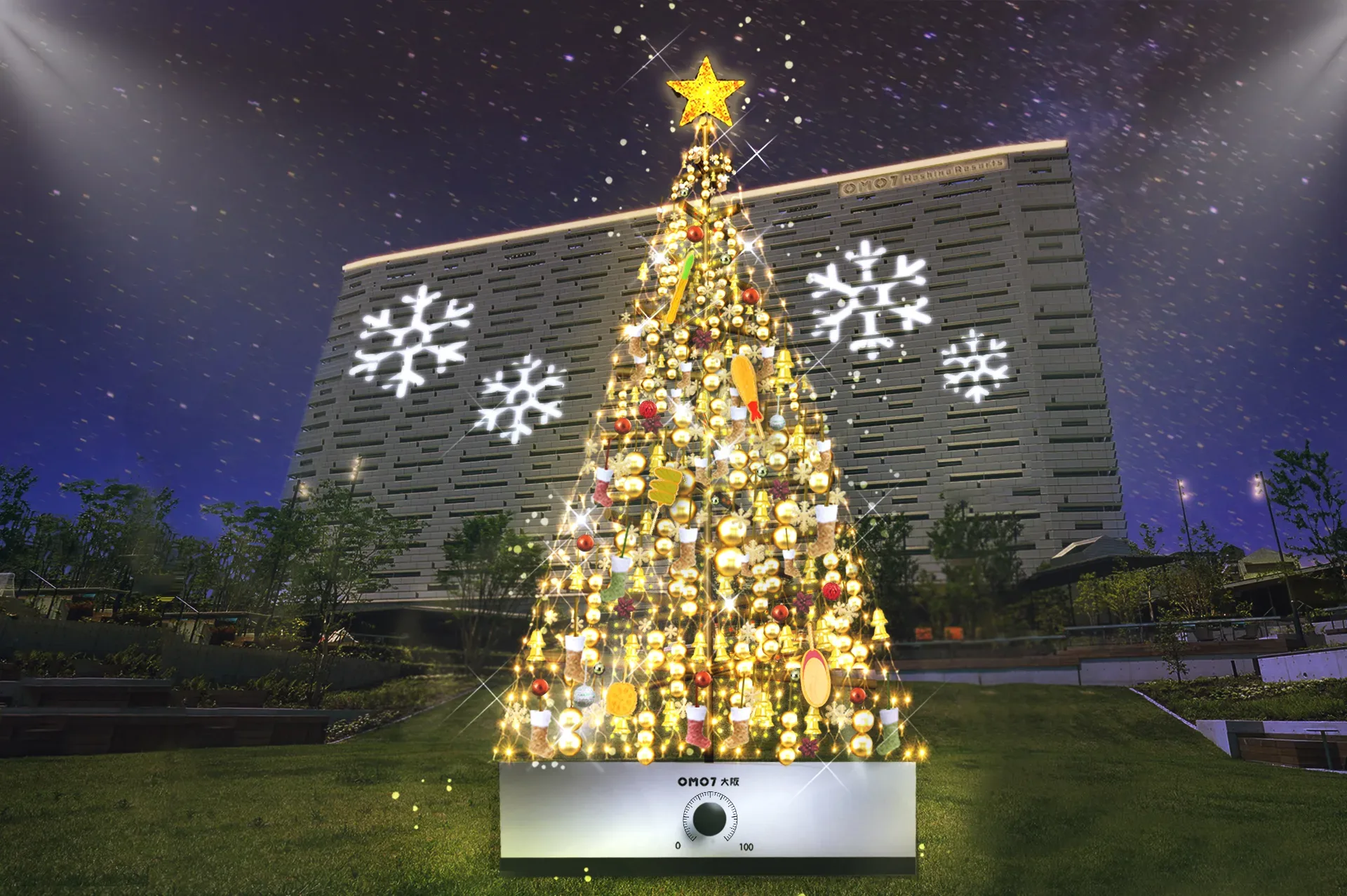 JR新今宮駅前、新天地のラグジュアリーホテル「OMO7大阪by星野リゾート」は串カツをテーマにしたクリスマスイベント「串カツクリスマス」を12月1〜25日の間、開催する。