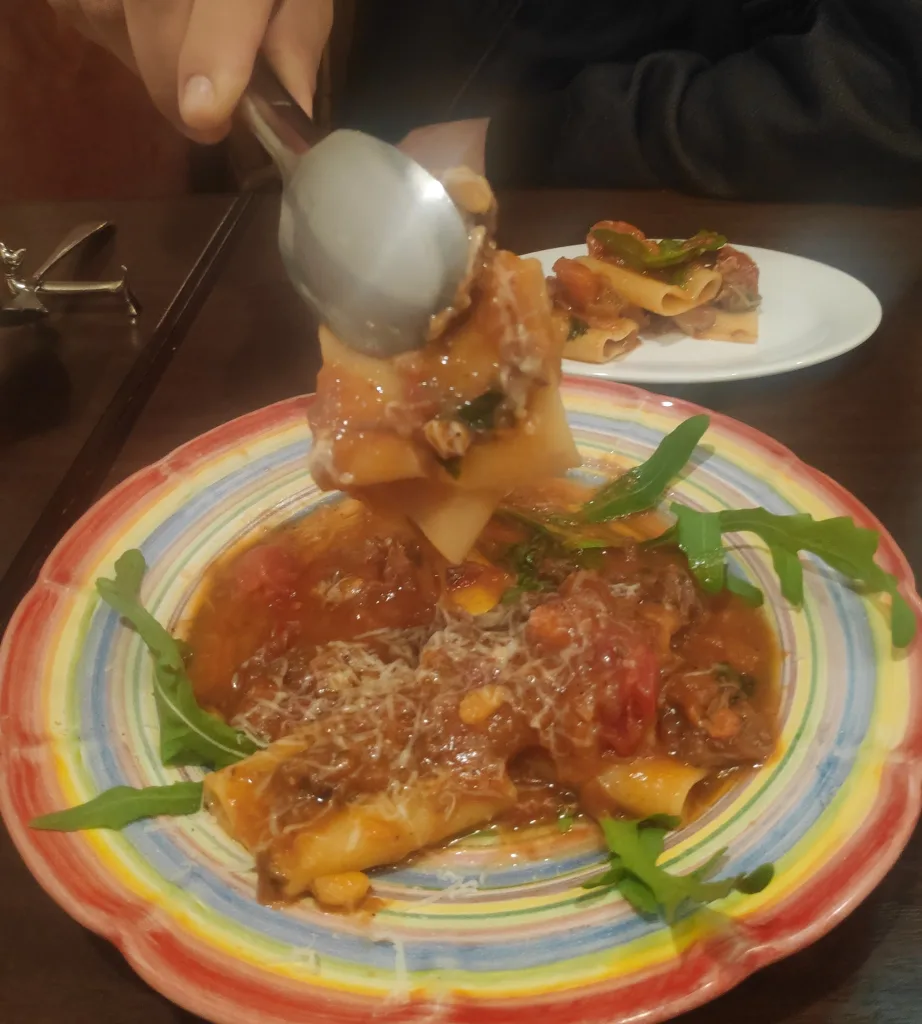 シェフゆりっぺさんが勧める冬にぴったりの一皿は、牛肉ゴロゴロ、香味野菜をたっぷりの牛もも肉の煮込みソースのパスタ「パッケリ」。22~25日には、クリスマスコースディナーを用意する。