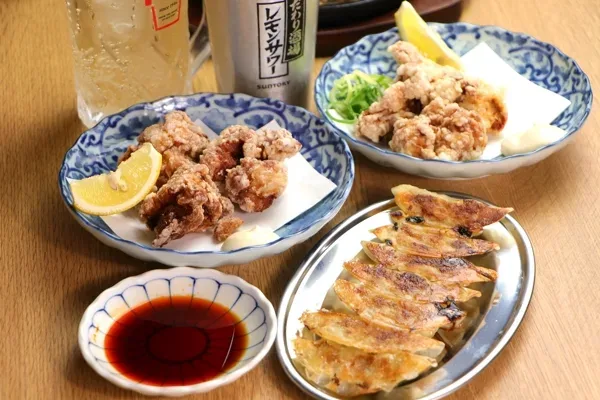 フードメニューは70種類以上をラインナップ。「四川風麻婆豆腐」や店内で仕込んだできたての「鶏煮込み」「焼きビーフン」など定番の居酒屋メニューも魅力だが、中でも注目したいのが2大名物の「餃子」と「手羽トロ唐揚げ」だ。