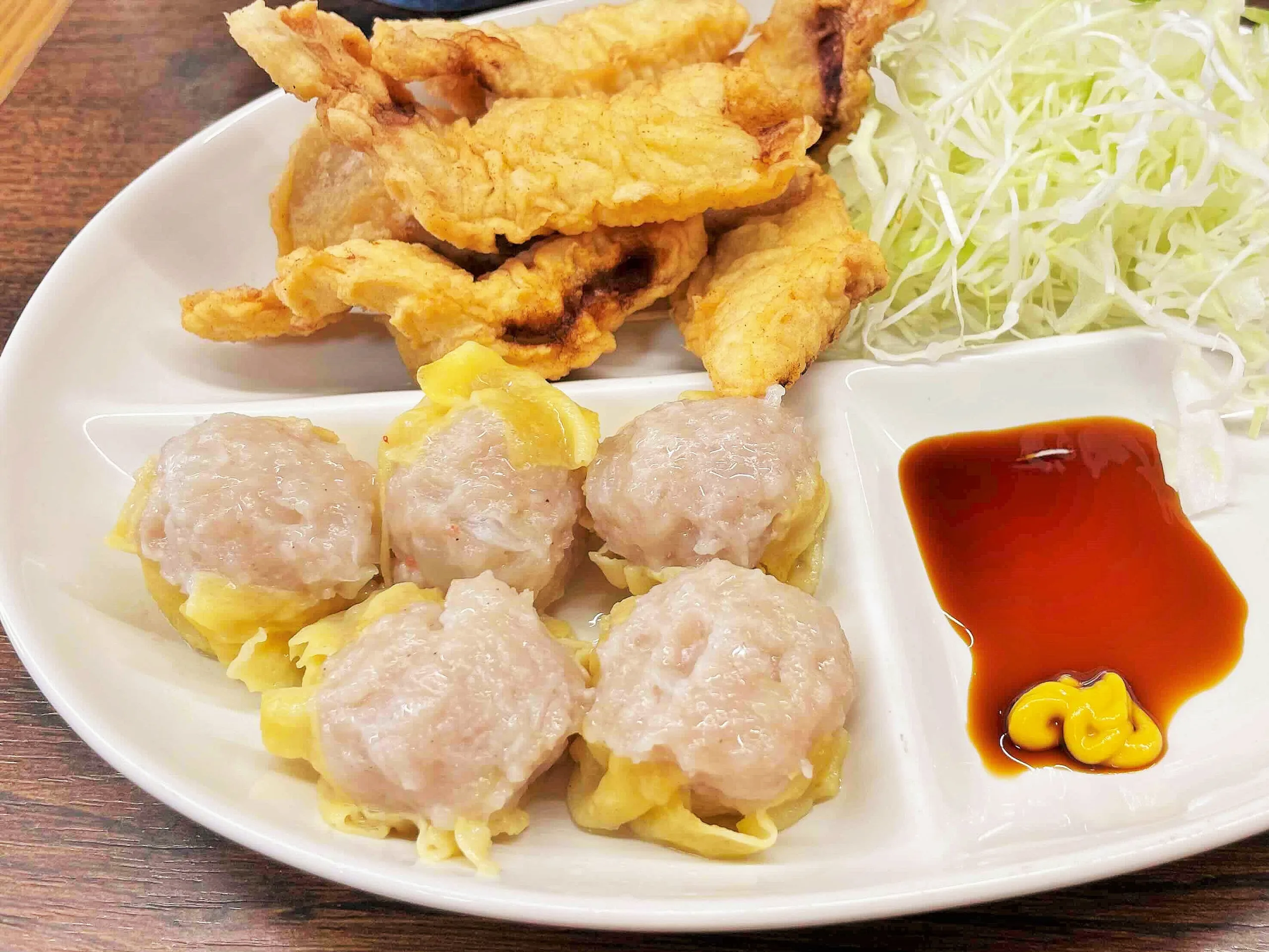 同店のシュウマイは、市販の一般的な小麦粉で作られた皮で包むのではなく、手製の薄焼き卵で作った皮を一つ一つ丁寧に包んでいる。これは戦後、小麦粉が手に入らず、薄焼き卵を代用したのが始まりで今でもその製法のままなんだとか。
