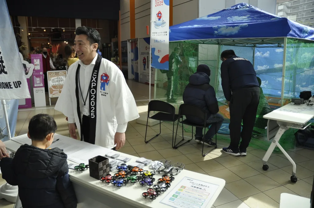 大阪・関西万博を盛り上げようと、鶴見区の商業施設イオンモール鶴見緑地でドローンの操縦体験や空飛ぶクルマのVR体験などが20、21日に開催され、多くの来場者で賑わった。