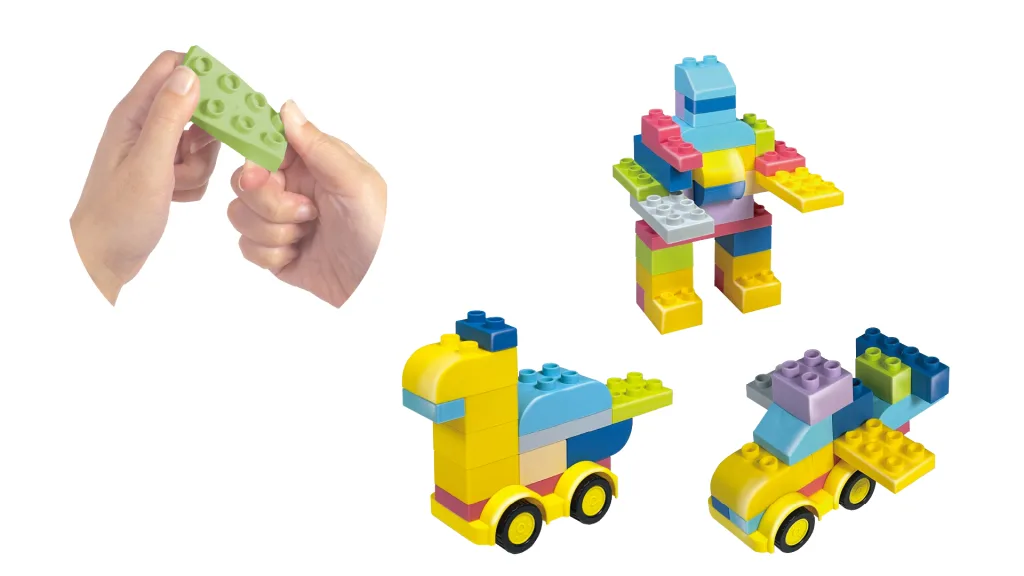 一般的なブロックといえば固いプラスチックだ。口に入れてしまうので不衛生だったり、床に転がっているブロックを踏んで怪我をしてしまうこともある。EVA素材の柔らかいブロックは、洗える素材で、プールや風呂で浮かべて遊ぶこともできる。また弾力性があるので、踏んでしまった際も怪我をしにくい。