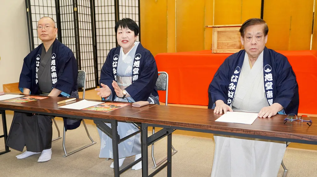 それぞれの教室は特徴があり、南鱗は「三代目南陵は弟子志願者を集めて『講談道場』をずっと開講しておられた。没後、私が引き継いで運営してきたがコロナ禍で自然休校のやむなきに。今回のスクールでは再び三代目の演目を中心に教えて行きたい」、また南華は「講談教本に残っている3分講談から入って、受講生の希望に応じて」、南湖は「私が創作講談が得意なので、それを」とさまざま。