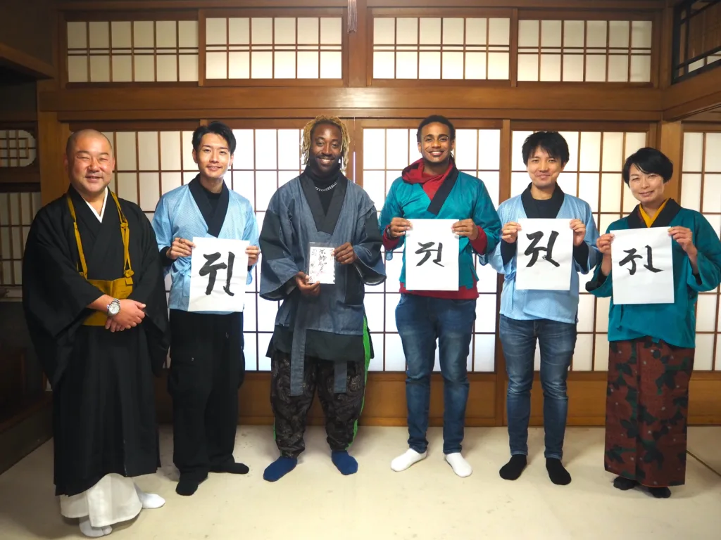 ガイドは在日アメリカ人のゼイン・フレッチャー・ジョンソンさんが担当。本堂で住職によるお参りからはじまり、「阿字観(あじかん)」といわれる瞑想法や習字、抹茶体験など盛りだくさんの内容となった。阿字観は、大日如来を表すサンスクリット語「ア」の文字を心の中と発声で唱える瞑想のことをいう。日本人でも日常で味わうことのない体験に、参加者からは「心が清められるような感覚がある」と好評だった。
