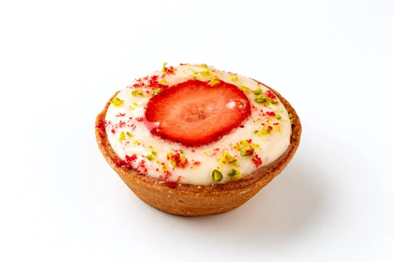甘酸っぱいベリーの味わいとピスタチオの彩りに春の訪れを感じる、フレッシュなあまおう苺を使用したチーズタルト。