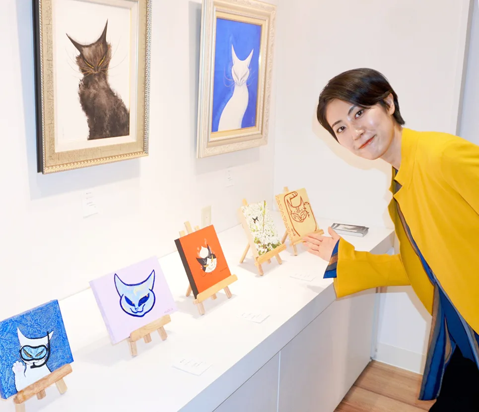 「猫の日の記念に、ネコ好きの方はぜひ」と呼びかけ。全品、購入可能で個展終了後に引き渡される。