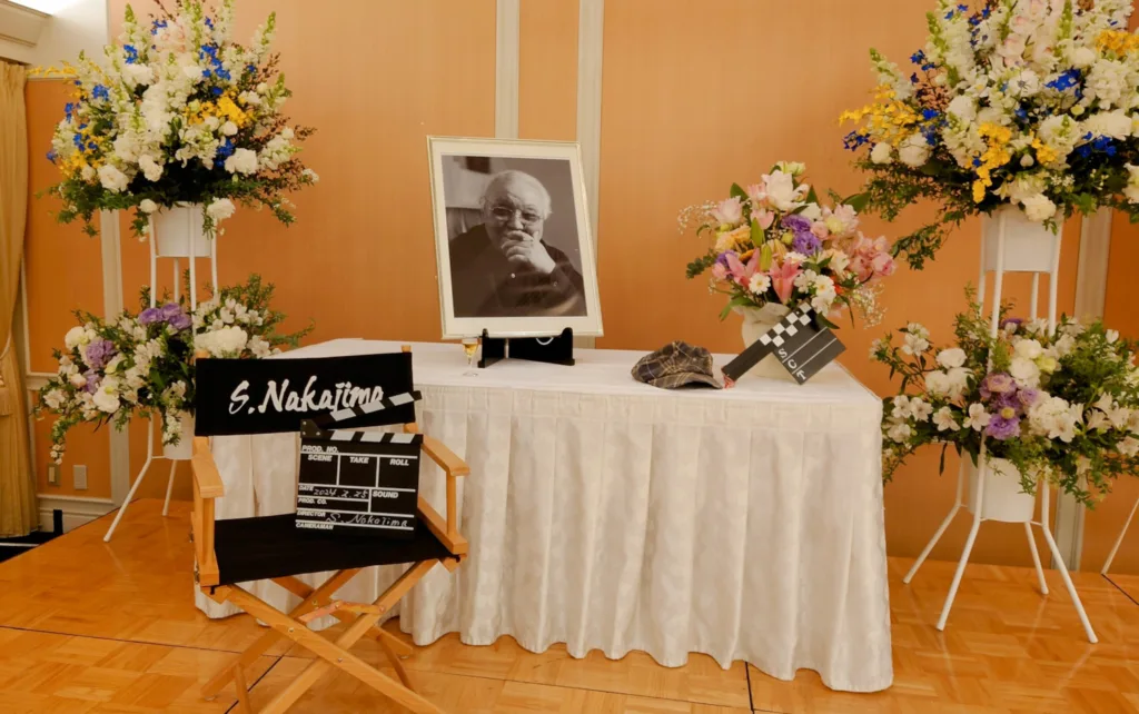 広い交友関係を反映し、この日は門川大作京都市長、大﨑洋大阪関西万博催事検討委員会共同座長や俳優の富司純子、三島ゆり子、橘麻紀、寺島進らも出席。演壇には、中島監督の遺影とカチンコなどが飾られ、トロフィーや賞状が所狭しと並び、残された台本やスチール写真、ポスターなども展示。順に参加者が思い出や功績を語り、会場内では映画論や演出論にあちこちで花が咲く独特の雰囲気に。二次会も含め、夜遅くまで同監督をめぐる交歓の輪が広がった。