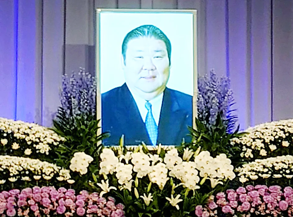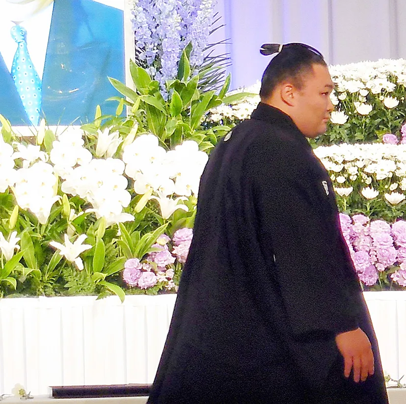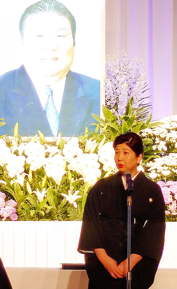 この日は野田義和・東大阪市長、細井美彦・近大学長が弔辞、妻の恵さんが「主人は近大相撲部で本格的に相撲人生を始め、大阪の多くの関係者やファンの皆様に育てていただきました。相撲協会定年のパーティーも朝乃山大関昇進のパーティーも、コロナ禍で開催できなかったので〝体調がよくなったら、必ず皆さんと直接お目に掛かってお礼を言いたい〟と申しておりました。残念ながら果たせず亡くなりましたが、本日はこの会場に来て皆様に親しくお礼を申し上げていると思います」と涙ながらに感謝の言葉を述べた。
