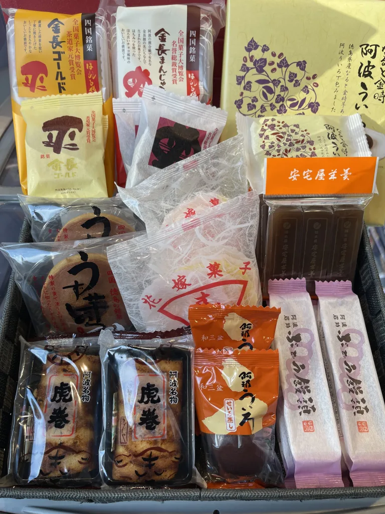 土産として昔から人気の「金長まんじゅう」をはじめ、徳島銘菓は根強いファンが多く、日々リピーターが訪れるという。銘菓部門人気トップ3は、あっさりさらし餡(あん)が魅力の「安宅屋羊羹(あたぎやようかん)」、あんこを虎柄の皮で巻いた「虎巻」、入荷するとすぐに売り切れてしまう「ぶどう饅頭(まんじゅう)」だ。スタッフの平田さんは、「あっさり上品な甘さの菓子は大阪にも熱烈なファンを獲得していて、入荷数もどんどん増えています」と話している。
