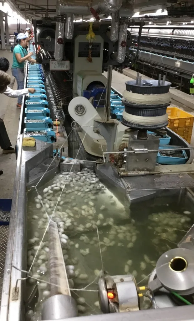 「繭づくりの最適な気温は28度前後。加えてエサとなる桑の葉の収穫時期も重ねると春と秋の年2回。一年の売上をこの2回に集約させるわけだから、当然シルクの値段も高くなる」と状況を説明しながら、「わずかに残った生産者や技術者の高齢化も進み、このままでは輸入に頼るしかなくなると危機感を覚えた。大好きなシルクを次世代につなげたいという思いで会社を立ち上げた」と振り返る。