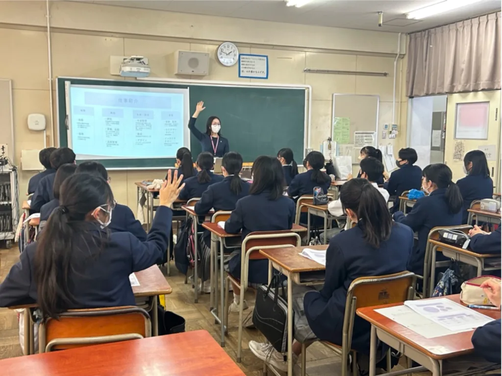 2月15日、蒲生中学校(城東区)で、中学生に働くことへの興味や関心を育んでもらおうと、1年生を対象にした企業説明会(ハローワーク大阪東主催)が開かれた。中学生向けの企業説明会は、2020年に新学習指導要領で小学校から高校までの継続したキャリア教育の必要性が示されたことをきっかけに、ハローワークが、各地域の学校や企業と協力して行なっている。