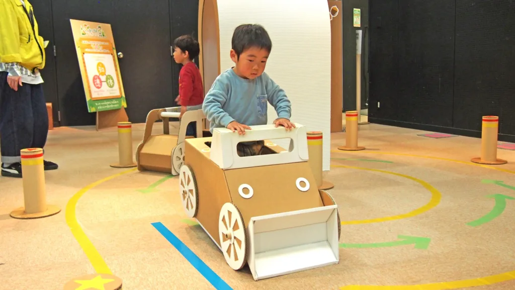 同館は、春休み(3月23日~4月7日)と大型連休(4月27日~5月6日)の期間中に限り、5階・ホール前に「段ボールの遊園地」が登場する。環境に配慮した再生段ボールで作った「○△□型パズル」や「ワークショップ」で感性と想像力を引き出し、自走式「ゴーカート」や「コーヒーカップ」で体を動かす。まるで遊園地に来たような、わくわくドキドキ体験を楽しめると好評だとか。