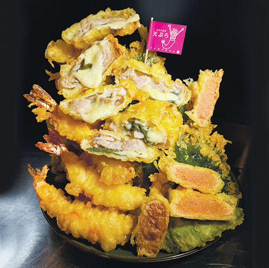 アメ村ど真ん中に店を構える天ぷら酒場。果物がみっちり詰められたフルーツサワー(追いチュー可)と、断面を魅せてボリューミーに盛る「天ぷら盛合わせ」が看板メニュー。人気は「豚チーズ」と、天ぷらのメニューも少し風変わりだ。見た目だけでなく食材にもこだわり、産地直送のモノを使用。普通の居酒屋やビールが苦手な人は特に行きやすい。