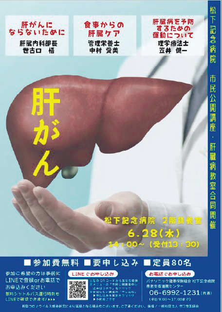 松下記念病院は、6月28日午後2時から「肝がん」をテーマにした市民公開講座を開催する。