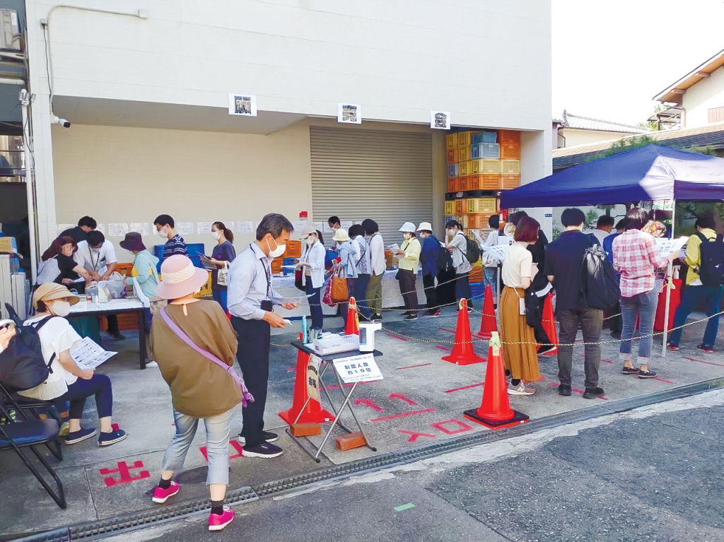 「自称、日本最古のポン酢専門店、大徳」のチラシ→「来たーっ!」の読者諸兄! 5月27日(土)、もはや恒例となった感もある直前すぎる告知。知る人ぞ知る行列(=写真)ができる直売会だ。ゆず、すだちなどの柑橘(かんきつ)系果実のさわやかな酸味がやみつきになる同社オリジナルポン酢のほか、新発売の生姜(ショウガ)ドレッシング、近江、神戸、米沢などご当地牛肉カレーや、同社の調味料マニアがセレクトしたカレーに合う調味料を含む30品以上のこだわり品が並ぶ。買う品が毎回決まっている常連さんは同社のSNSにメッセージを送ろう!予約時間で受け取れるぞ!