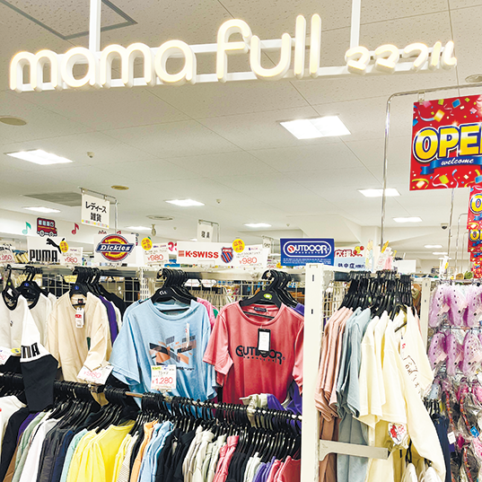 5月25日、今福ファミリータウン地下1階にファッション雑貨の店「ママフル」がグランドオープン。ベビーから大人のファッションアイテム、生活雑貨、学校に必要なものまで揃(そろ)い、人気はタオル類。スポーツタオルが200円から、バスタオルは490円からと、その他にも生活に必要なものが、お手頃な価格で手に入る。