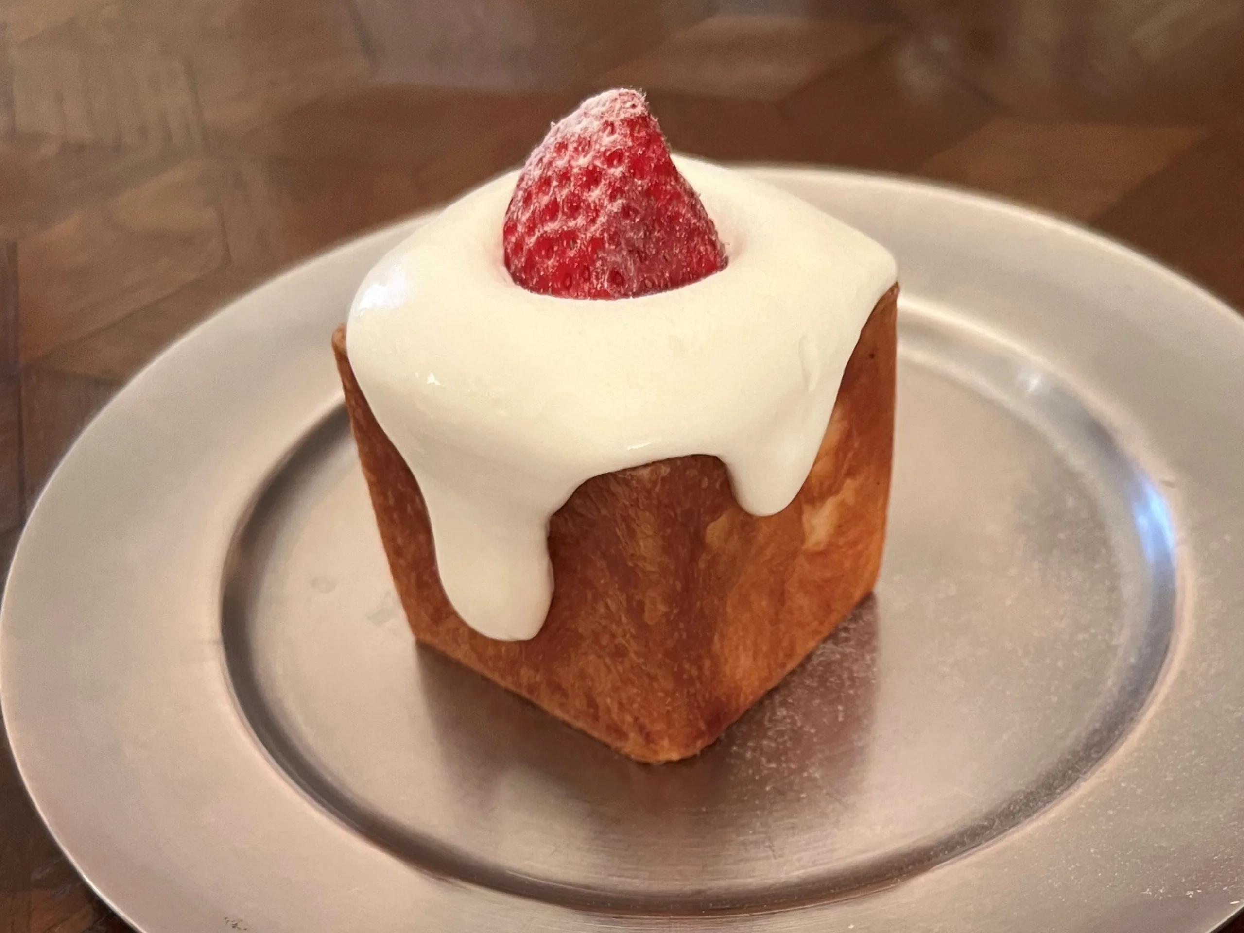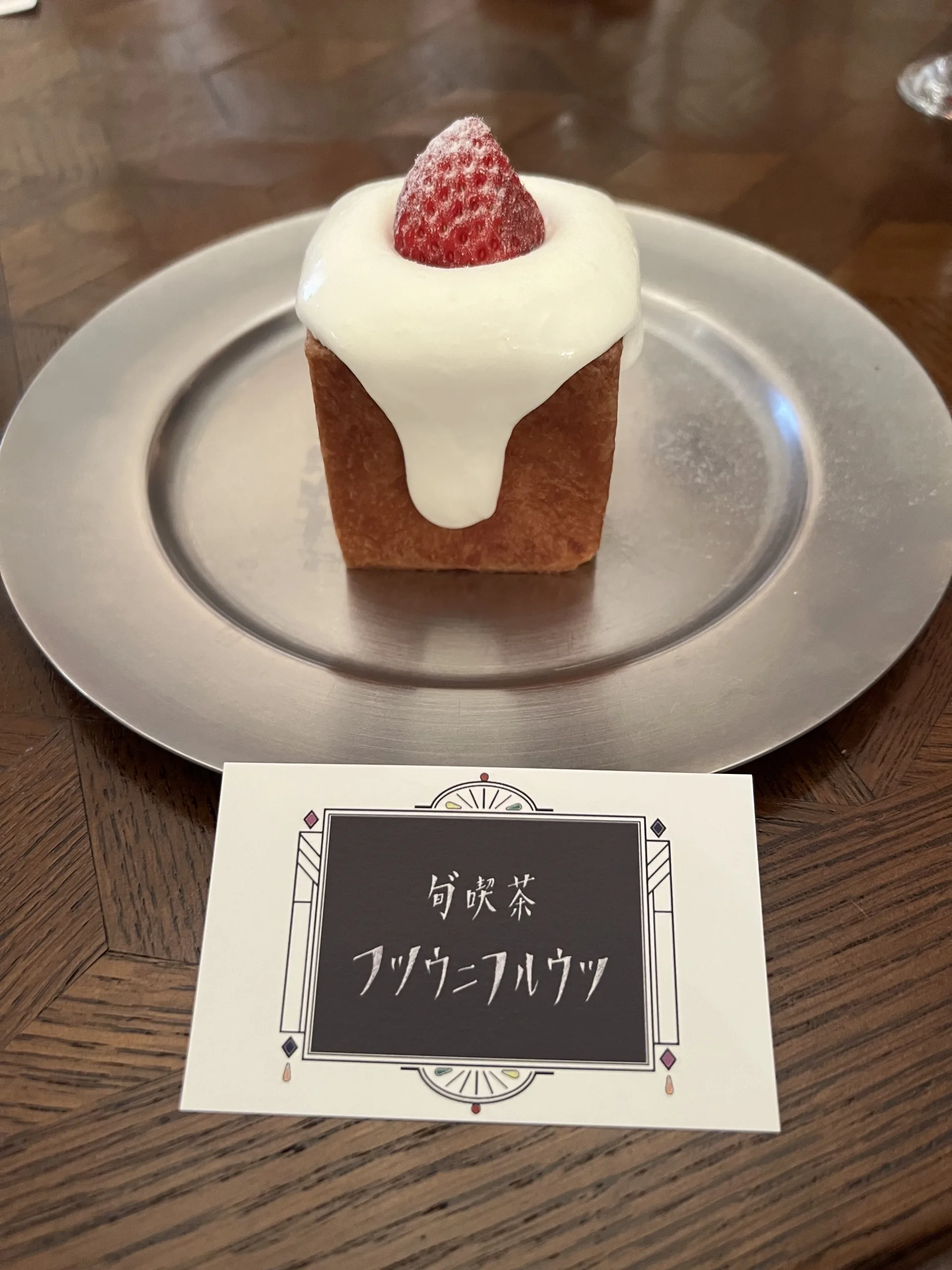 メニューはフルーツサンド(1500円)をはじめ、1階店舗の名物、バターをふんだんに使ったリッチなオリジナル食パン「ムー」を使いろうそくに見立てたキャンドルムー(700円)や、焼き菓子(350円)を揃える。