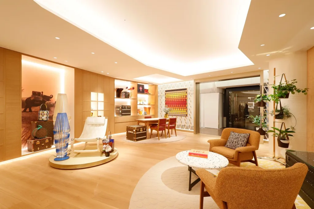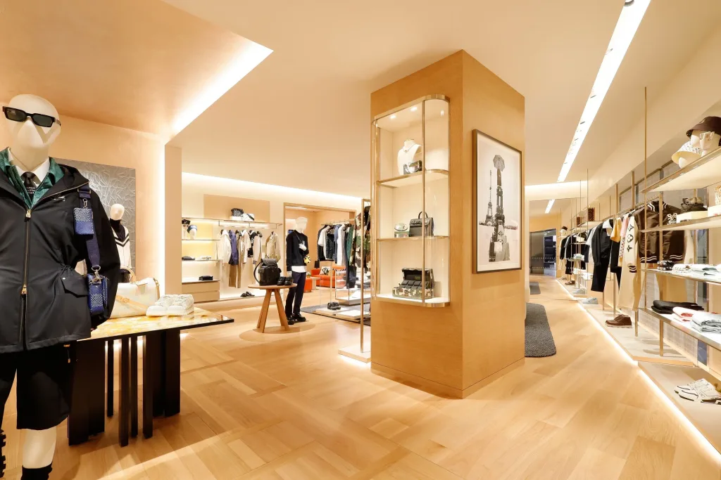 ファッションの感度が高い男性向けの最新コレクションとシューズが揃う。また、併設のサロンでは「ルイ・ヴィトン」のリモートショッピングができる。
