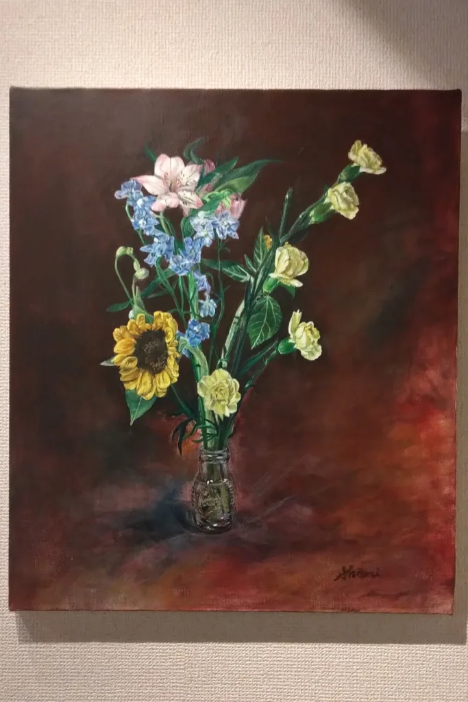 チョークアートやビーズアート、水彩画などハイクオリティーな作品は、その場で購入ができる。同店は絵描きでもある浅野さんが20年ほど前から作品を展示できるギャラリースペースにリニューアル。以降、若い作家さんを中心とした作品品展示をしてきた。障がいを持つ人たちのギャラリー展示は3回目のチャレンジ。浅野さん「絵画を見ながらまったりくつろぎの時間を!」を話している。