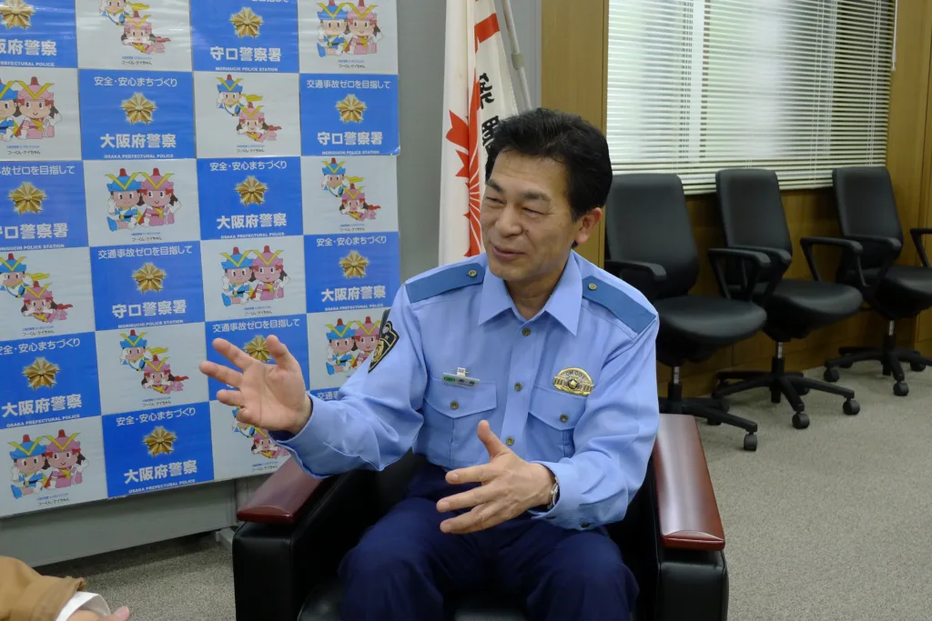 【署長】いえいえ(笑い)。毎日、署員と顔を合わせ、私にとって署員は家族だと思っています。私は署員とともに大阪の「守り口」として大阪府民、守口市民の命と暮らしを守る仕事にやりがいとともに今の職責に感謝の気持でいっぱいです。