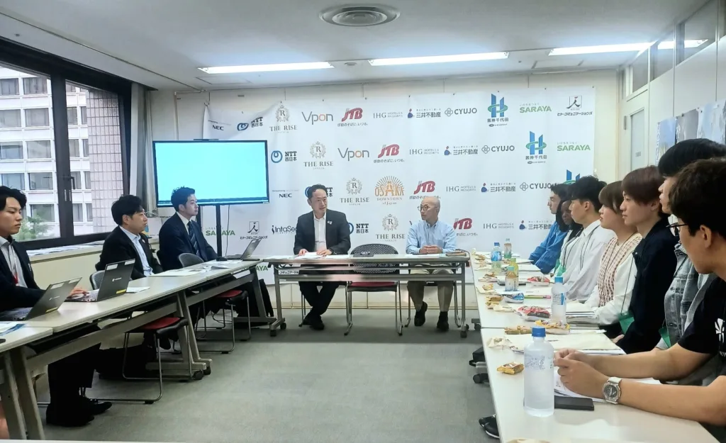 博覧会協会、大阪観光局のメンバーと意見交換する学生ら=5月15日、大阪観光局