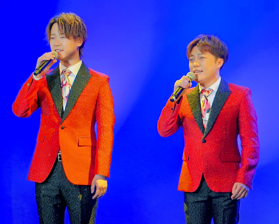 大阪発流行歌ライブで並んで歌うはやぶさの2人