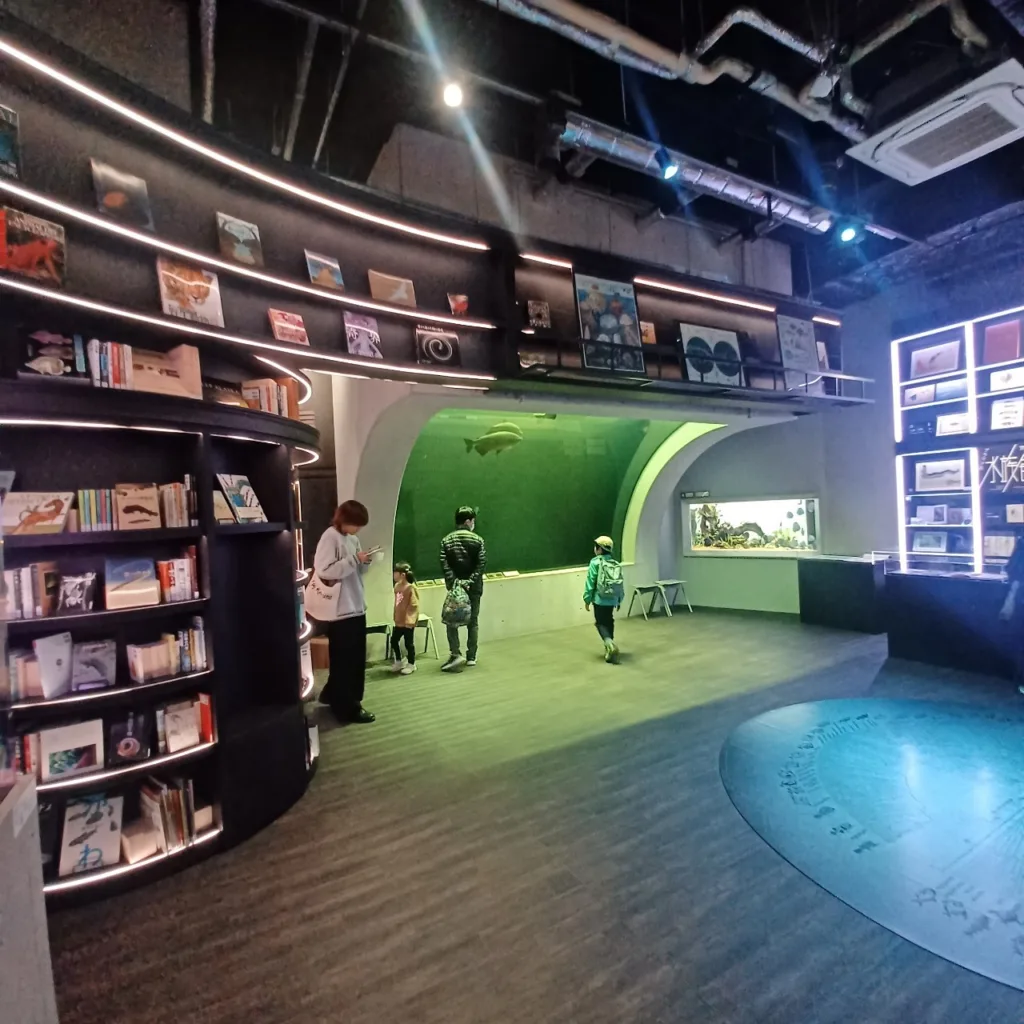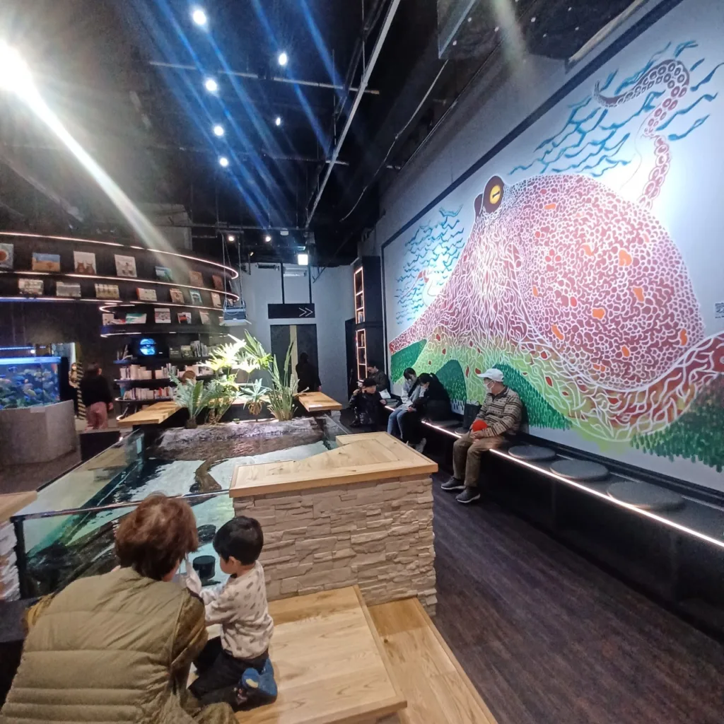 まるで水の中で読書をしている感覚!? 多くの本と魚が共存する空間