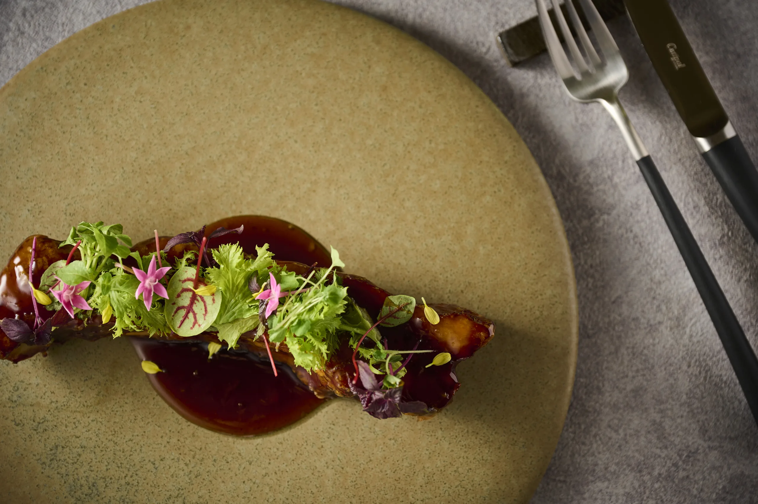 ディナータイムには、コンクールで入賞した料理を組み込んだ三種類のコースを用意する。また、料理とペアリングするドリンクは、ワインだけでなくユニークなラインナップからソムリエがセレクト。相性抜群の一杯との出会いも楽しみのひとつだ。