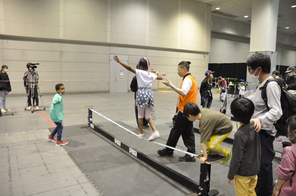 会場にはダブルダッチやけん玉からも世界屈指のパフォーマーが集結。世界の超人技を間近で体感した参加らはその技にくぎ付けに。プロ選手やインストラクターが教えるエリアには、BMXやスケートボード、ダブルダッチ、スクラッチライン、けん玉などのアーバンスポーツを中心に、「2025年大阪・関西万博のテーマでもある『いのち輝く未来社会のデザインに』通じる」(主催者)という最先端テクノロジーを体感できるAR(拡張現実)スポーツ「HADO」や、光ったパネルにサッカーボールを当て、得点を競う「ICONパスマシーン」など子どもから大人まで楽しめるコンテンツを設けた。会場では、実際に体験したり、プロに教えてもらいながら、笑顔で思いきり体を動かすシーンがみられた。