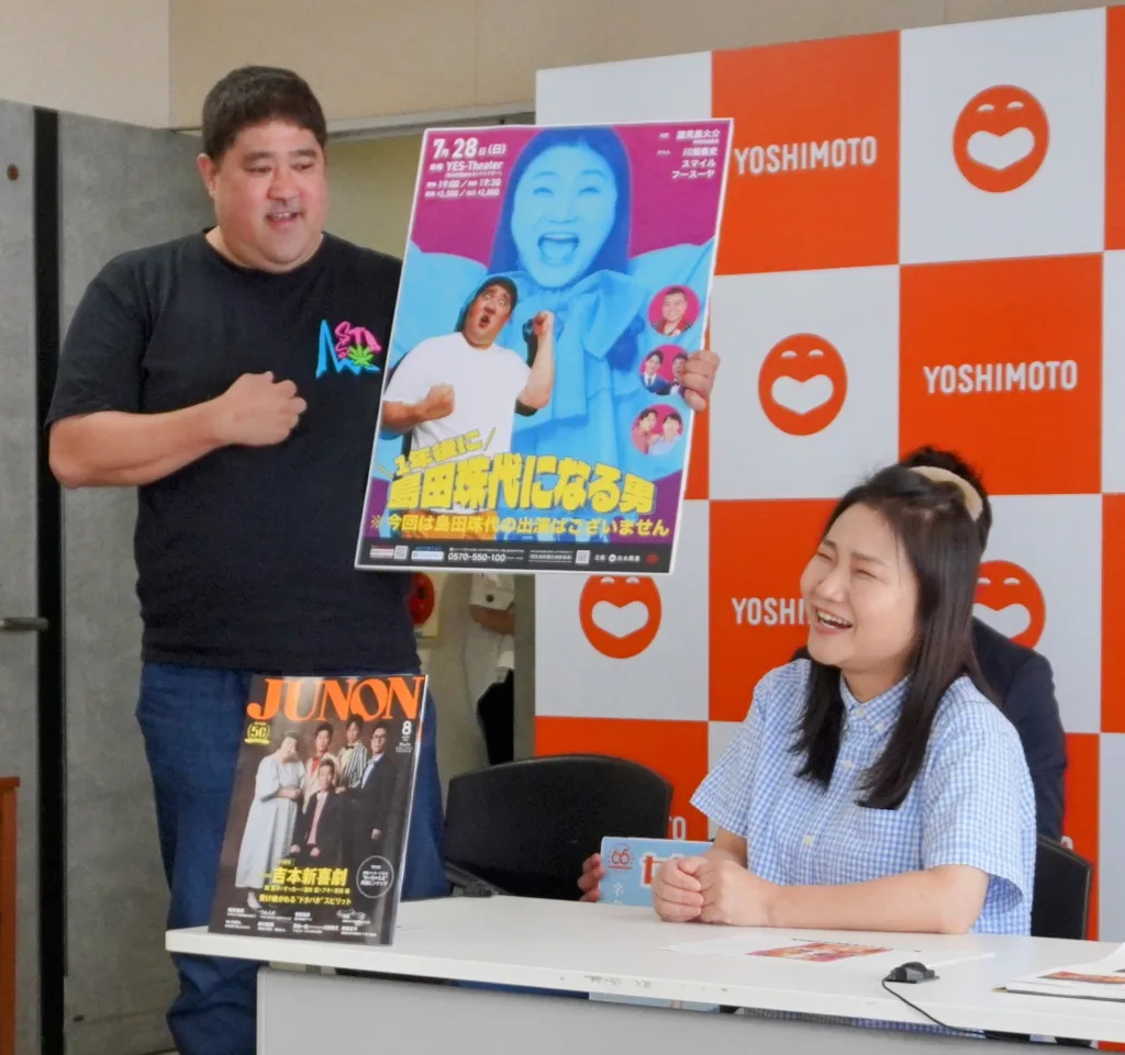 この日は、雑誌のJUNONやあまから手帖で吉本新喜劇特集が組まれた事を紹介。座員の諸見里大介(41)は〝新喜劇65周年の顔〟に指名されている島田珠代(54)が出演もしないのに「1年後に島田珠代になる男」と題した自身の座長公演を7月28日夜になんばグランド花月地下のYESTHEATERで上演する事を発表するなど、盛りだくさんの内容だったがすべて多和田の結婚報告に持って行かれた格好。