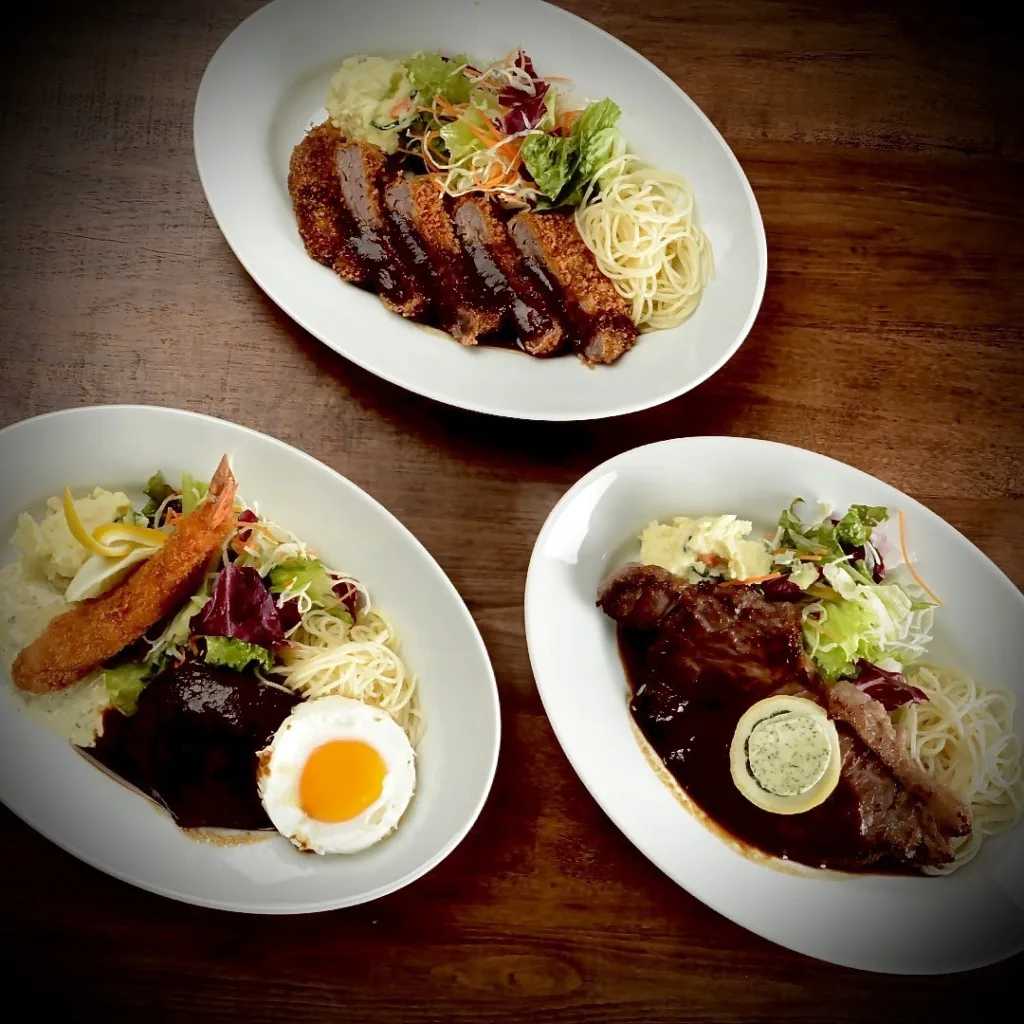 ビンテージ加工を施した木のドアなどレトロな外観が印象的な同店だが、メニューも昔ながらの、どこか懐かしい〝王道洋食〟を揃える。「ビフテキ定食」や、ハンバーグ・エビフライ・目玉焼きにライスをセットした「A定食」はランチにも最適。このほか、「ビフカツ」や甘酸っぱいソースが特徴の「ポークチャップ」、牛バラ肉をホロホロになるまで煮込んだ「ビーフシチュー」など単品メニューも充実。老若男女を問わず、熟練シェフが手掛ける一皿を楽しめる。