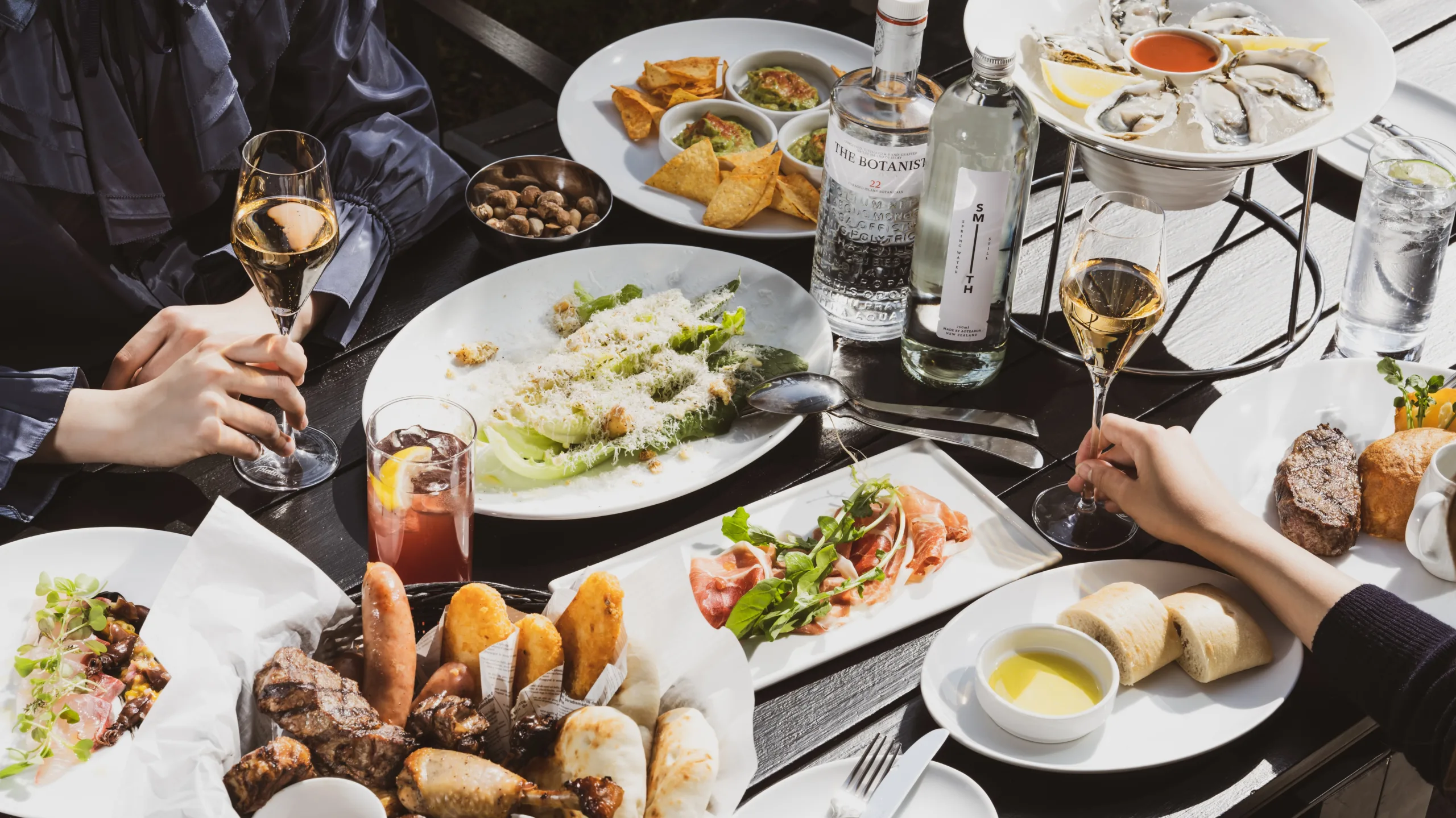 今年は、炭火の香り豊かなサーロインステーキやみつせ鶏もも肉のロースト、ブラジルソーセージをはじめとする肉を集めたバスケット。つまみにもピッタリなトルティーヤチップスやワカモレ(メキシコ料理のソース)も揃う。