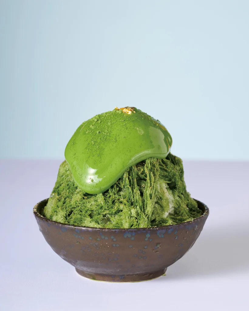丹波産大納言小豆を使った「抹茶エスプーマ」は、抹茶好きにはたまらないうま味と香りが存分に楽しめるかき氷だ。大納言小豆餡(あん)、白玉、バニラアイスが中に包まれてあり、食べ応えも十分。