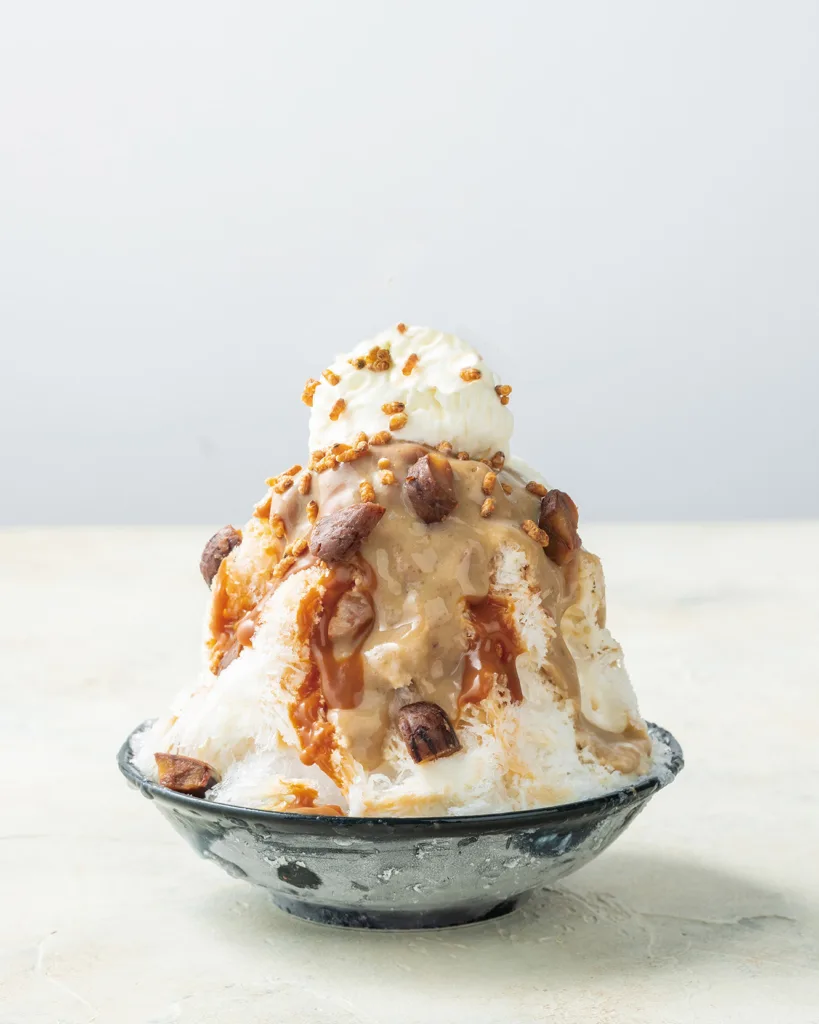 「丹波栗とキャラメル」は、芳ばしいキャラメルソースと玄米パフが丹波栗の風味を引き立てる特製かき氷となっている。どちらも丹波本店よりは食べやすいサイズで提供されるので気軽にトライできそうだ。
