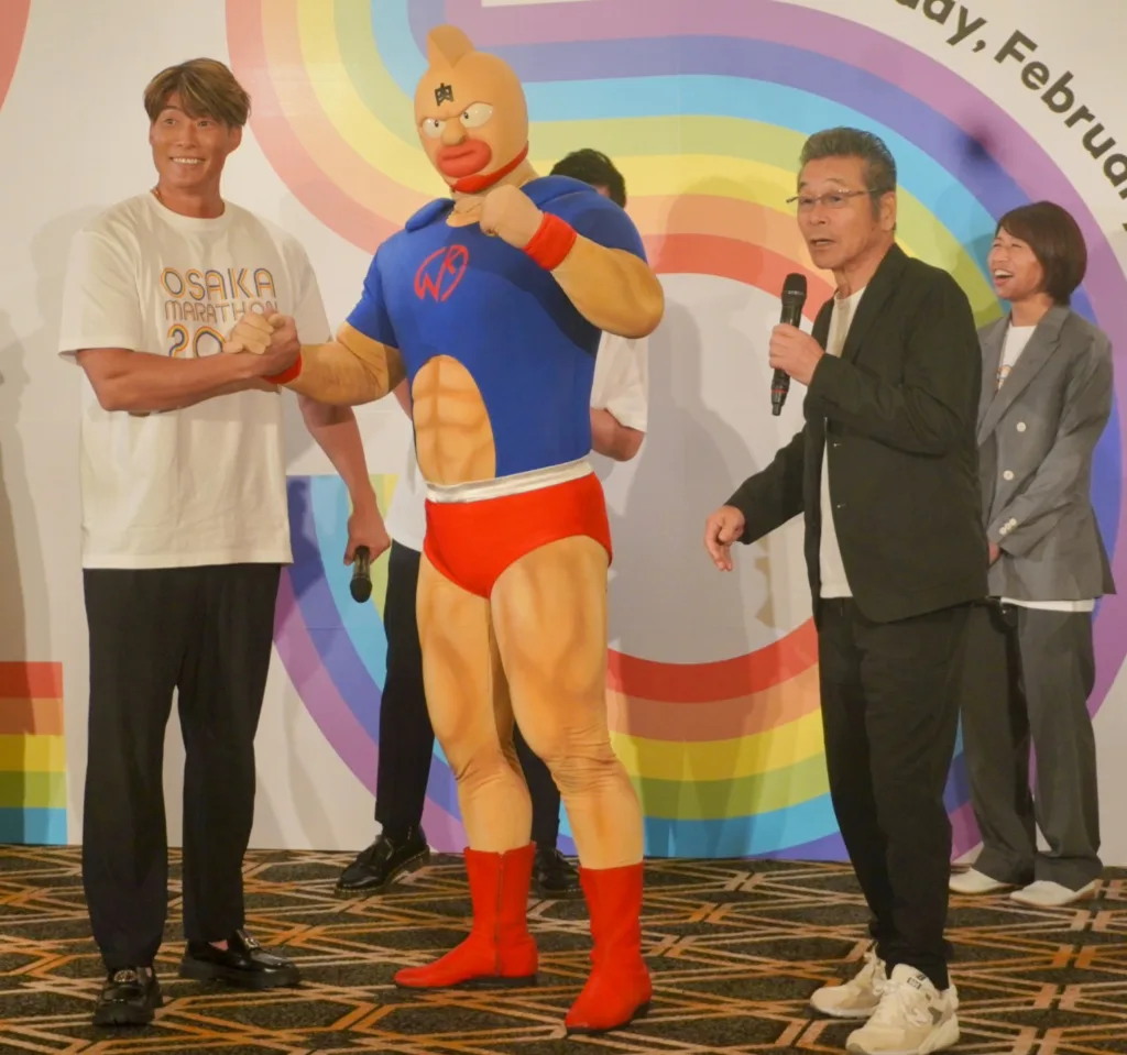 見事な腹筋美に皆あっけに取られた様子だったが、自身も肉体美で知られる糸井さんは「今日で一番テンションが上がった! 憧れなんです。7㌔走る予定やったけど、キン肉マンがフルマラソン行くんやったら、僕も一緒に走ります。牛丼、何杯食べましょうか?」と本気モードに。それでも冷静な寛平さんは「キン肉マンは無理!」とフルマラソン参加を即座に一蹴、糸井さんは苦笑いするしかなかった。