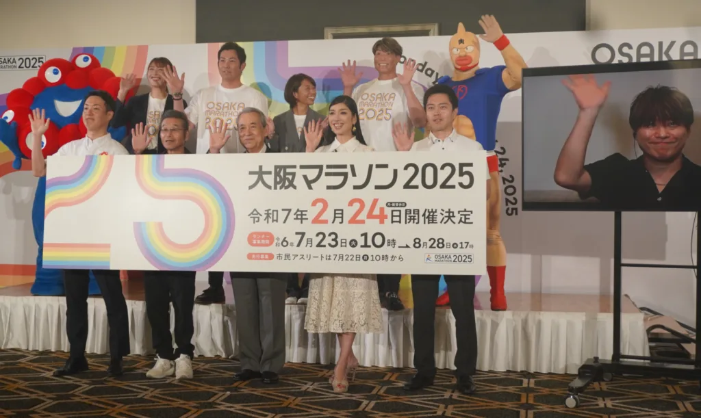 来年2月24日に開催される「大阪マラソン2025」(出発・大阪府庁前、ゴール・大阪城公園内)の概要についての発表会見がこのほど開かれた。