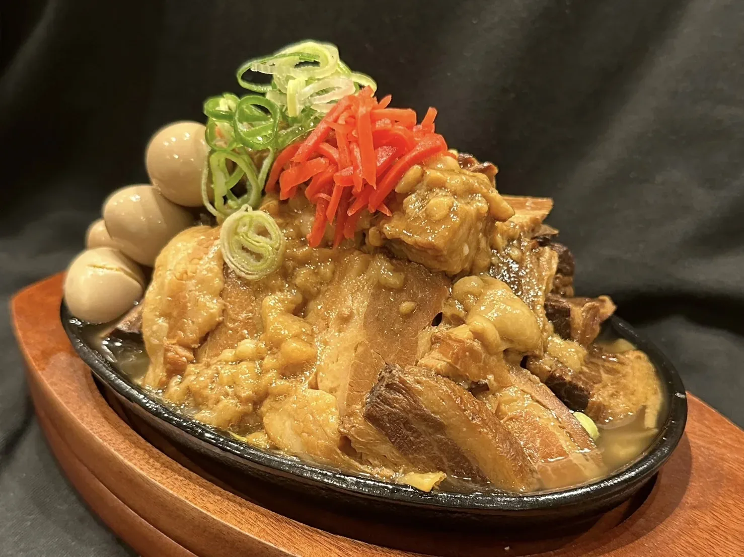 同店は、極太麺と溜まり醤油ソースをベースにした独自の新しいやきそばで、にんにくをふんだんに使った醤油ベースのソースに極太麺を絡めた焼きそばだ。