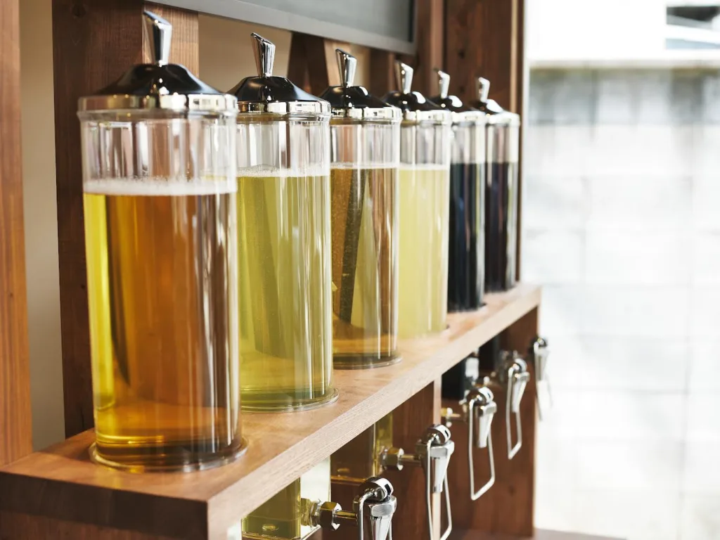 いろんなシャンプーやトリートメントを少しずつ楽しめる「量り売り」を行っている。