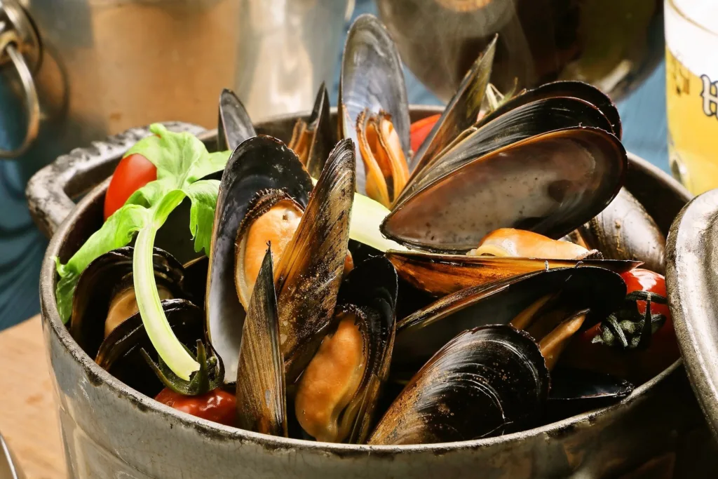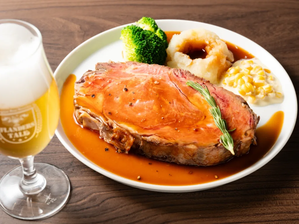フードは、ビールとの相性を考えた約60種類を用意する。看板メニューは、やわらかい肉質が特徴のリブロースの中心部位のみを使用し、自家製グレービーソースで味わう「FT特製 プレミアムローストビーフ」。また、燻製料理は、ベーコン・牡蠣・ホタテなどの食材を温かいスモークとともに容器へ閉じ込め、目の前で開いて提供する臨場感満点の演出も魅力だ。写真映えを狙うなら、山盛りのムール貝をエールビールで蒸した「バケツムール貝」が迫力抜群。気軽に楽しめるタパス(小皿料理)メニューもバラエティ豊かで、半熟卵にマヨネーズをかけた「ウフマヨ 黒オリーブor トリュフ」やスペイン風マリネ「烏賊と海老のサルピコン」、「カポナータ」など15種類と充実。