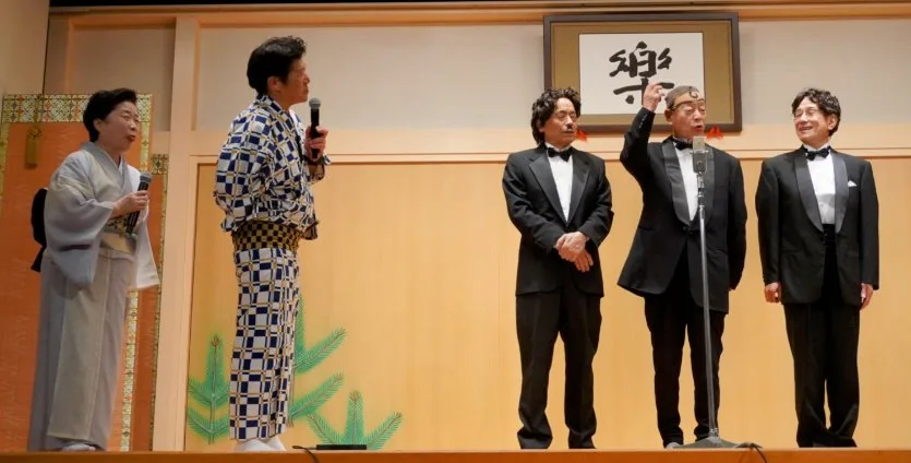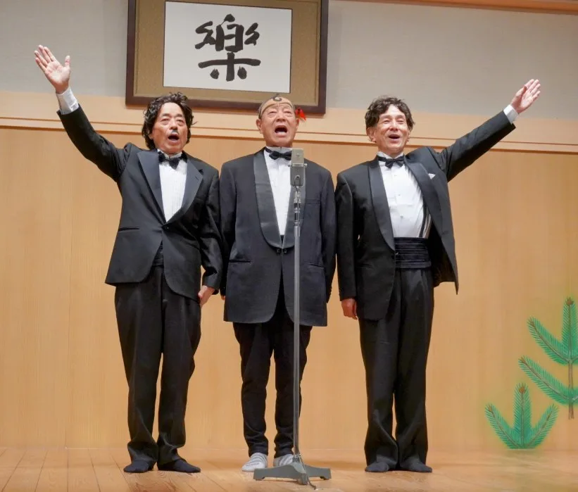 予行演習を兼ねたPRで「漫画トリオ」が登場。夜の部(午後6時開演)に出演予定で、真ん中の故横山ノック・大阪府知事を月亭八方(76)、向かって左側のフック(現在の青芝フック)を桂小文枝(74)、同右側のパンチ(後の故上岡龍太郎さん)を桂米団治(65)が演じることに。タキシード姿でで「パンパカパ~ン!! 今週のハイライト!」のおなじみの文句とポーズで高座に上がり、八方はノックさんを模した前髪をひねったカツラで登場、ノックさんが得意だった「タコ踊り」に挑んだ。「当時は何でもできたんやろうけど、今はコンプライアンスの時代やからなぁ」と苦笑。桂文枝から指名され台本も担当する米団治は、上岡さんについて「シュッとして若くて二枚目。なるべく近付きたい。〝ノックさんをイジり倒して首根っこつかんで〟を完全再現したい」とやる気十分。
