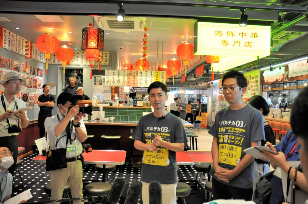 JR大阪駅西側の新駅ビル「イノゲート大阪」が31日に開業するのを前に、同ビル2~5階の飲食フロア「バルチカ03」でメディア向けの内覧会が行われた。当日はJR西日本SC開発の開発担当、舟本恵さんが囲み取材に対応した。