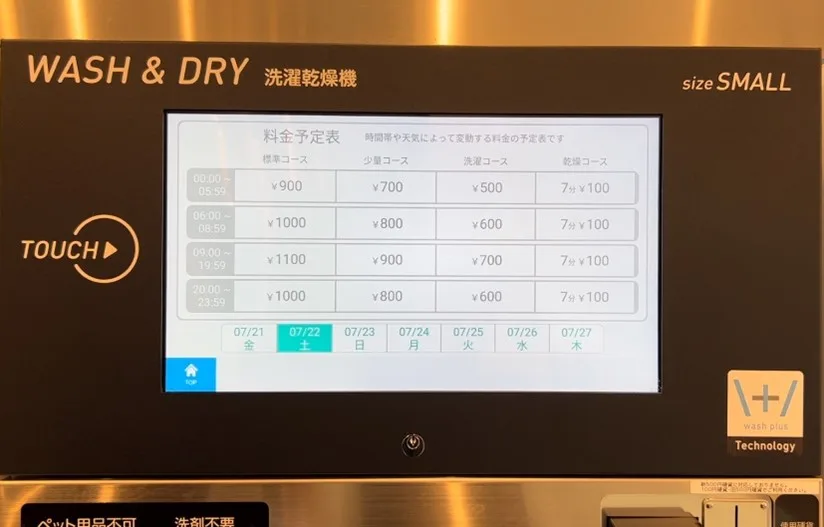 今回のリニューアルに伴い、同店ではコインランドリーでは関西初となるダイナミックプライシング(価格変動制)を導入する。利用者は前もって利用料金を確認・比較してサービスを受けることができる。