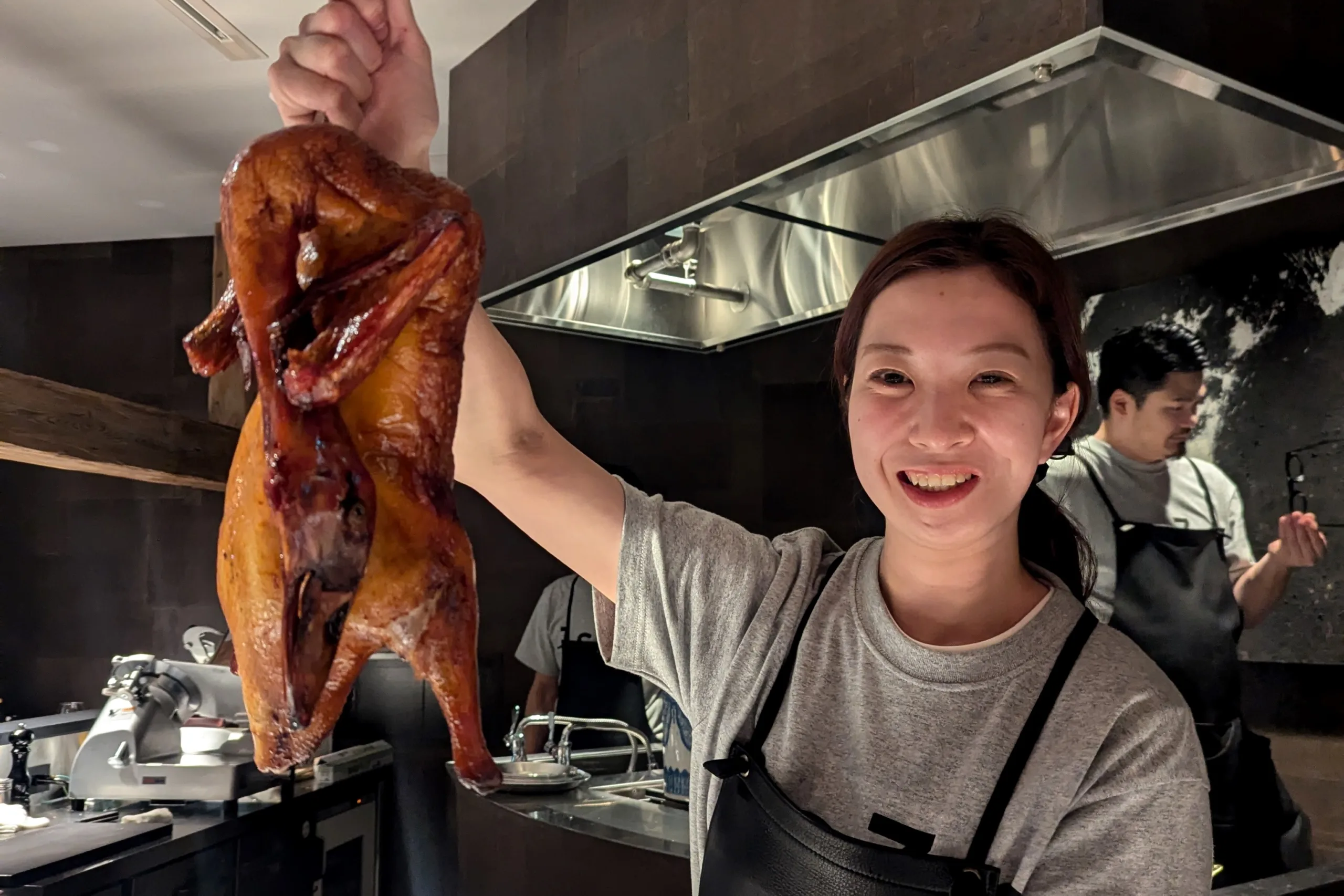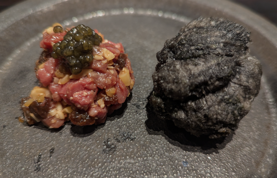 メニューは、旬の食材の良さを最大限に引き出したおまかせコース(1万3000円)の1種類のみ。名刺がわりの一皿「北京ダック」から始まり、「但馬牛とイカ墨のゼッポリーネ」「鮑とキノコのカルパッチョ」「生ウニの冷製パスタ」「大人のカキ氷」など、プレミアムな食材を使った全10品を提供する。