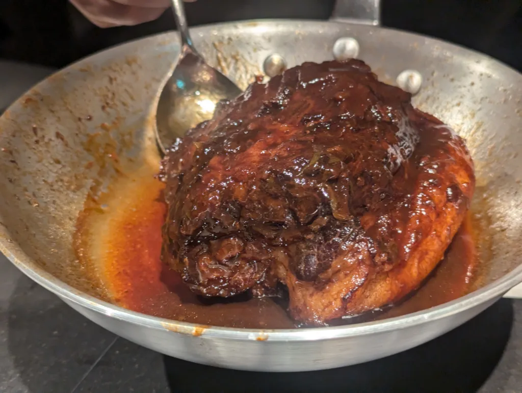 生姜焼きの概念を覆した一品「ベジョータの生姜焼き」は、最高級スペイン産の豚肉ベジョータを使って生姜焼きを作ったらどうかという好奇心から生まれたメニュー。シェリー酒の香りと丸ごとオーブンでローストした玉ねぎの甘味がマッチした大人な味わい。