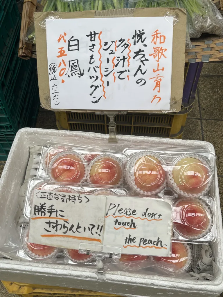 例えば、和歌山から入荷していた桃は、特秀ランクの優良品だが、二個で600円程度。ほかにも陸鹿尾菜(おかひじき)などレア野菜も販売。また、店舗では販売時に野菜の調理方法も聞くことができ、新たな野菜世界を楽しませてくれる。