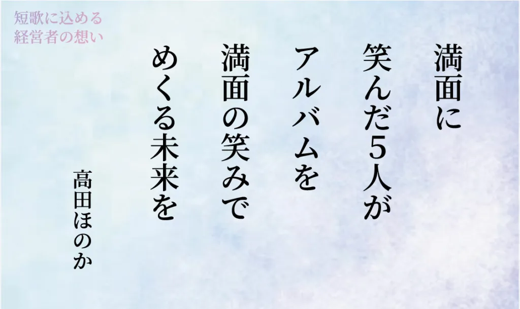【プロフィル】歌人 高田ほのか 大阪出身、在住 短歌教室ひつじ主宰。関西学院大学文学部卒。未来短歌会所属 テレビ大阪放送審議会委員。「さかい利晶の杜」に与謝野晶子のことを詠んだ短歌パネル展示。小学生のころ少女マンガのモノローグに惹かれ、短歌の創作を開始。短歌の世界をわかりやすく楽しく伝えることをモットーに、短歌教室、講演、執筆活動を行う。著書に『ライナスの毛布』(書肆侃侃房)、『ライナスの毛布』増補新装版(書肆侃侃房)、『100首の短歌で発見!天神橋筋の店 ええとこここやで』、『基礎からわかるはじめての短歌』(メイツ出版) 。連載「ゆらぐあなたと私のための短歌」(大塚製薬「エクエル(EQUELLE)」)