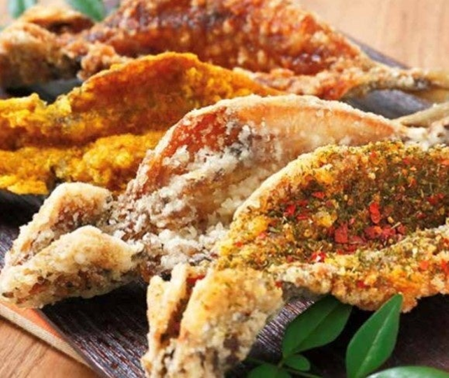 鯵の唐揚げ(塩・醤油・カレー・ペペロンチーノ・柚子胡椒・ソース・旨辛麻辣〈マーラー〉)