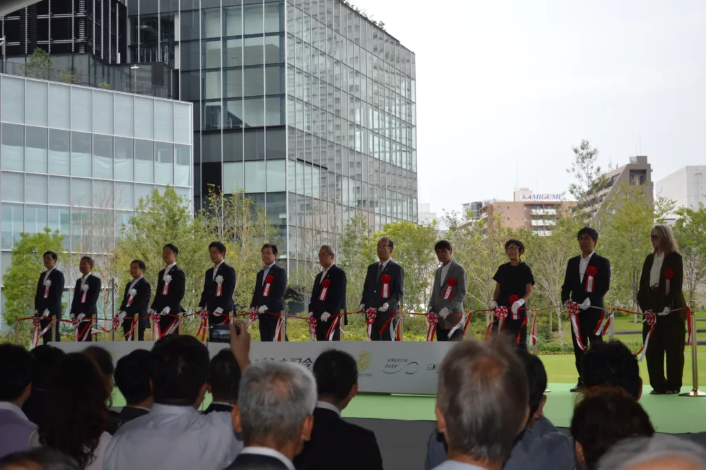 JR大阪駅北側のうめきた2期「グラングリーン大阪」は9月6日に先行まちびらきを迎える。この記念式典が3日、同所南側にある大屋根イベントスペース「ロートハートスクエアうめきた」で開催された。