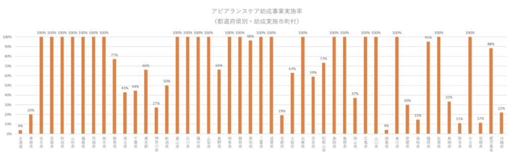 2024年度 アピアランスケア助成事業実施率(都道府県別・助成実施市町村)