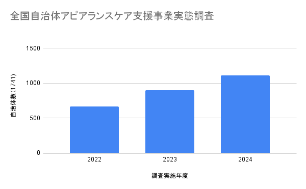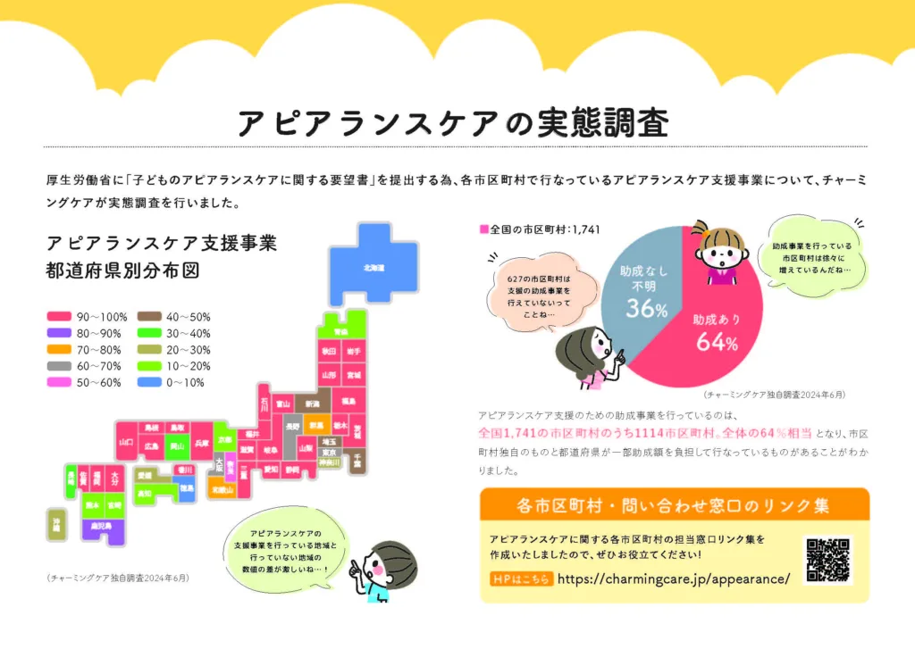 同団体によると、2024年6月ー8月にインターネットによる調査を行い、アピアランスケア支援事業としてなんらかの助成を市区町村および都道府県が行なっている自治体は全体(1741市区町村)の64%(1114市区町村)で、同団体が2022年に調査した際の38%(669市区町村)から比較すると、この3年間で実施自治体が増加していることがわかったという。